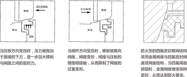 1、由于采用雙偏心結(jié)構(gòu),閥門(mén)在開(kāi)啟過(guò)程中,蝶板逐漸脫離閥座,減少了密封面之間的摩擦,從而延長(zhǎng)了使用壽命。閥座采用唇形結(jié)構(gòu)設(shè)計(jì),