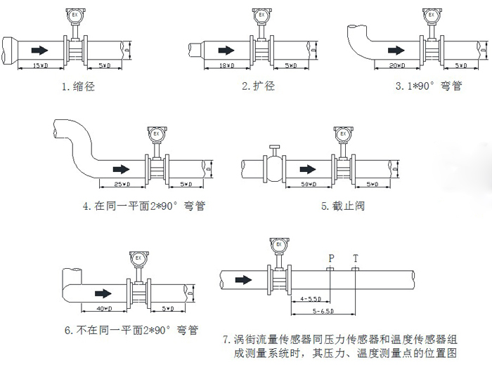 提示:常規(guī)情況下流量計(jì)均遵循前10后5原則(既:流量計(jì)前方最少要有10*D(D為流量計(jì)內(nèi)徑)長度的直管段,后方要有5*D長度的直管段。