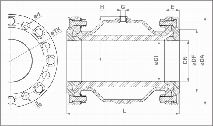 法蘭襯套密封加大L尺寸(DN 40 -1 00) / Flange sleeve sealing increases the Dimension L (DN 40 - 100)