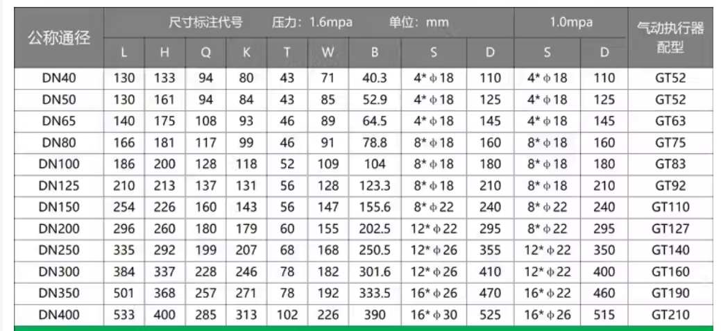 1. 公稱通徑:一般從 DN40 至 DN600。